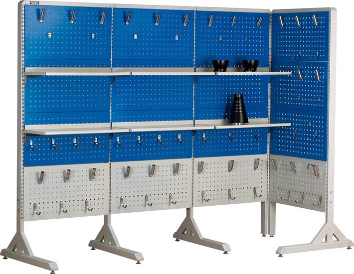 整理架可以自由组合,靠墙摆放或放置在车间中央,用于存储各类工具、零件,拿取方便,便于目视管理 整理架可选用带冲孔的上挡板、百叶窗式上挡板或各种置物搁板
