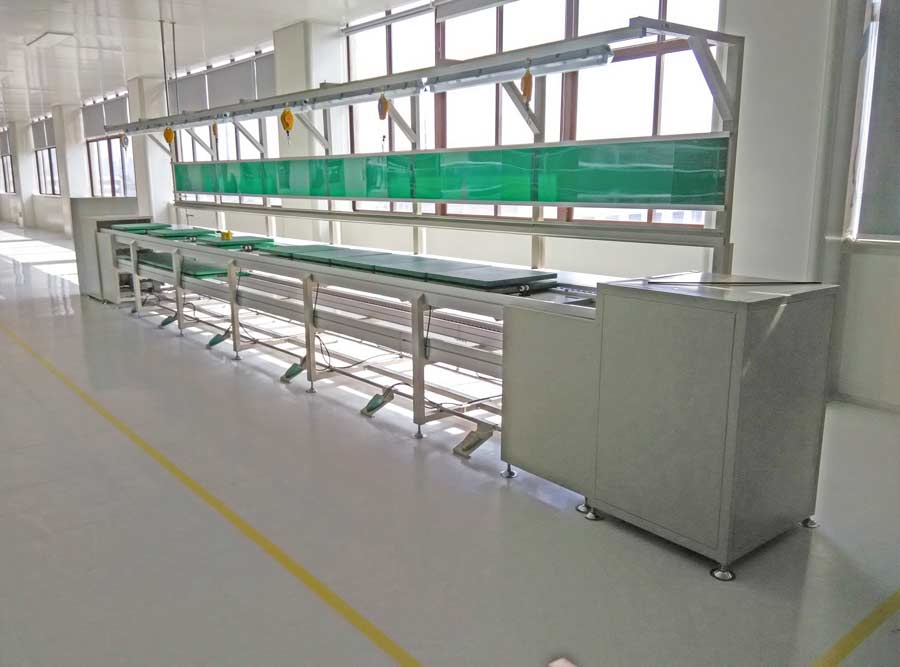 一般采用滚筒和倍速链两种形式其中倍速链生产线是以倍速链为核心设计的工业轮送线其中以2.5 倍和3 倍速链线为主,可用千大宗物品和各式散件的生产输送, 设备布局非常灵活,可以根据车间环境进行布局。